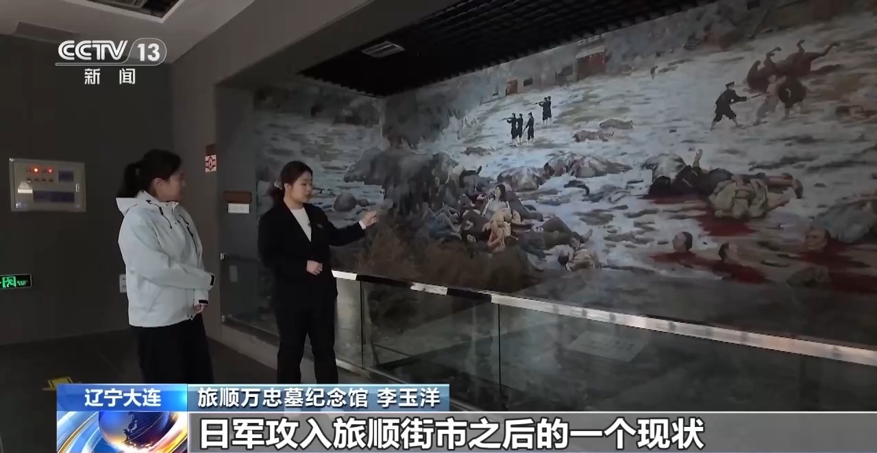 旅顺万忠墓纪念馆 李玉洋:旅顺大屠杀的惨案是甲午战争中最惨烈的惨案之一。在这面墙上的所有油画,就是记录了当时日军攻入旅顺街市之后的一个现状。警示后人,不要忘记这段历史,珍惜当下和平,明白国家强大、民族复兴的重要性。只有国家强大了,才能保护自己的人民,才能避免这样的悲剧再次发生。