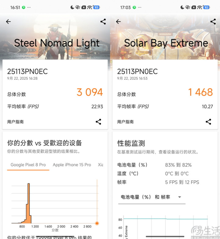 不过根据我们三易生活从高通方面获取的信息,新的GPU改进会需要软件方面的适配才能更好地体现。从目前的3DMARK版本来看,它显然还并不完全适配第五代骁龙8至尊版的GPU新特性。再加上小米17的GPU温控似乎比CPU更加严格,这就使得它的低温跑分比常温足足高了19.5%。